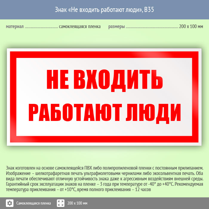 Знак «Не входить работают люди», B35 (пленка, 200х100 мм) в Омске купить