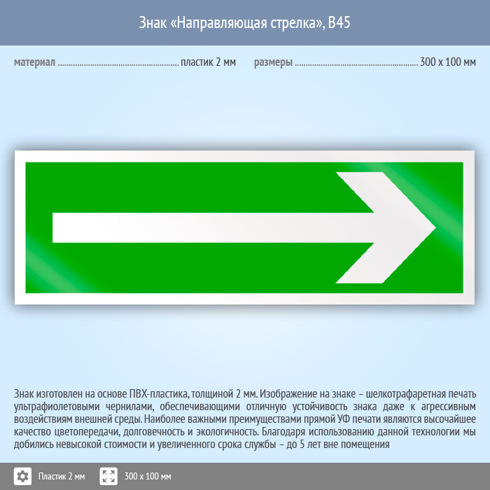 Знак «Направляющая стрелка», B45 (пластик, 300х100 мм) в Омске купить