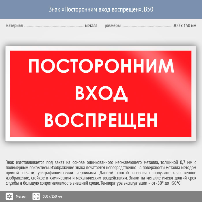 Знак «Посторонним вход воспрещен», B50 (металл, 300х150 мм) в Омске купить