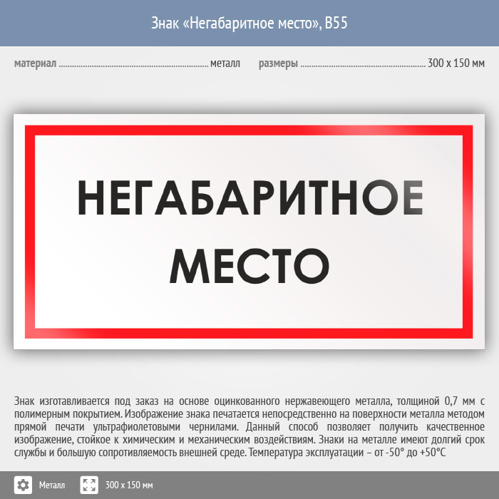 Знак «Негабаритное место», B55 (металл, 300х150 мм) в Омске купить