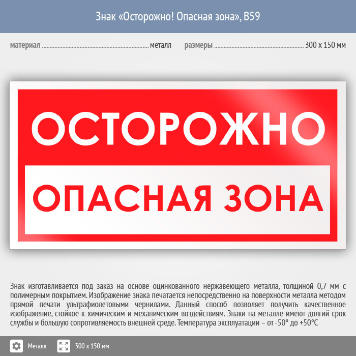 Знак «Осторожно! Опасная зона», B59 (металл, 300х150 мм) в Омске купить