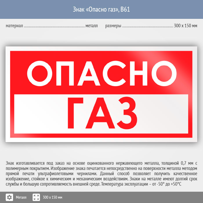 Знак «Опасно газ», B61 (металл, 300х150 мм) в Омске купить