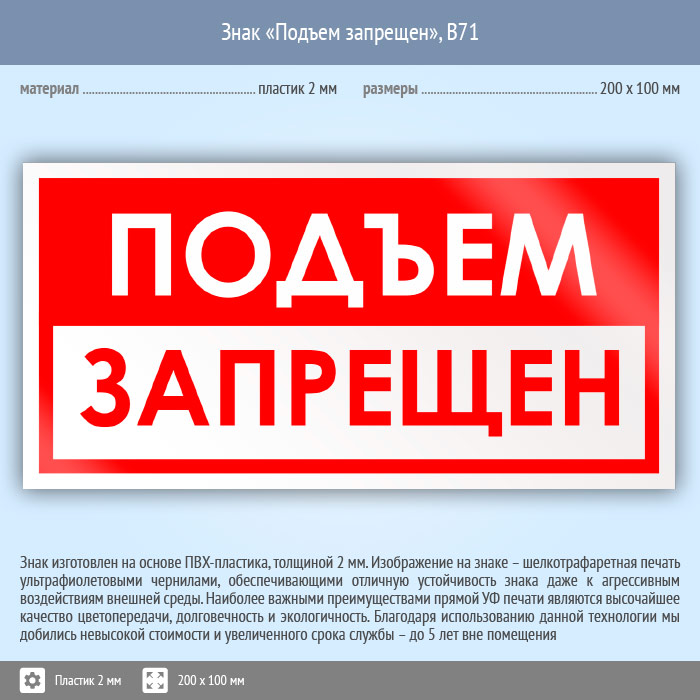 Знак «Подъем запрещен», B71 (пластик, 200х100 мм) в Омске купить