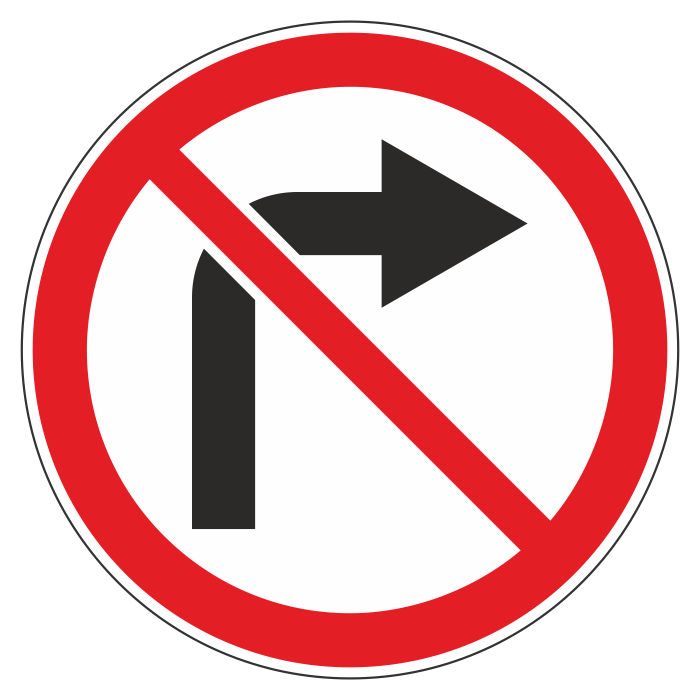 Дорожный знак 3.18.1 «Поворот направо запрещен» (металл 0,8 мм, II типоразмер: диаметр 700 мм, С/О пленка: тип В алмазная) в Омске купить