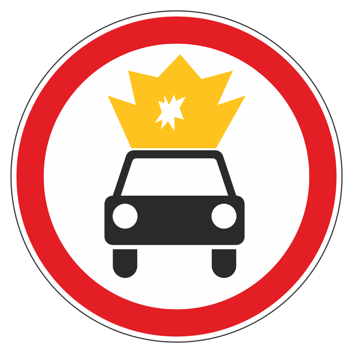 Дорожный знак 3.33 «Движение транспортных средств с взрывчатыми и легковоспламеняющимися грузами запрещено» (металл 0,8 мм, I типоразмер: диаметр 600 мм, С/О пленка: тип А инженерная) в Омске купить