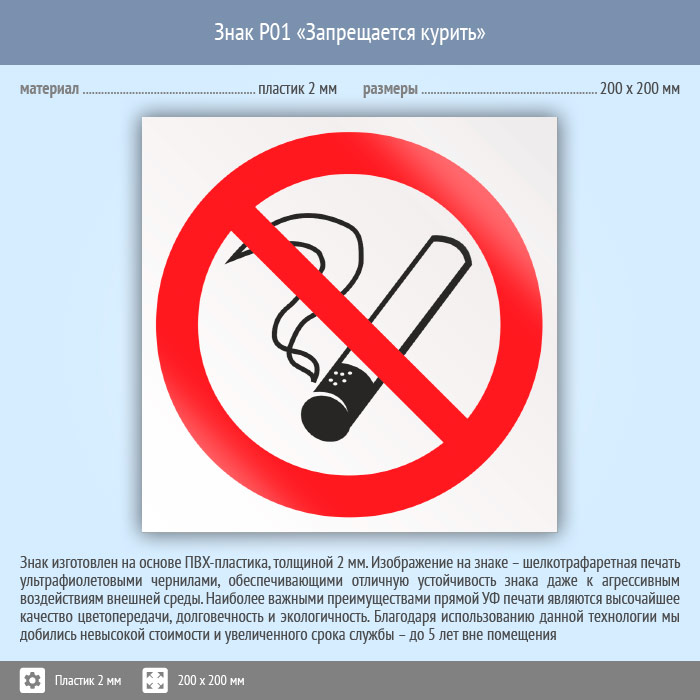 Знак P01 «Запрещается курить» (пластик, 200х200 мм) в Омске купить