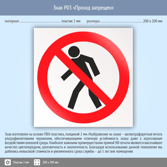 Знак P03 «Проход запрещен» (пластик, 200х200 мм) в Омске купить