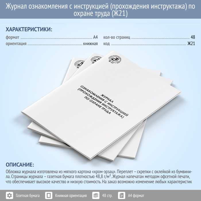 Журнал ознакомления с инструкцией (прохождения инструктажа) по охране труда (Ж21) в Омске купить