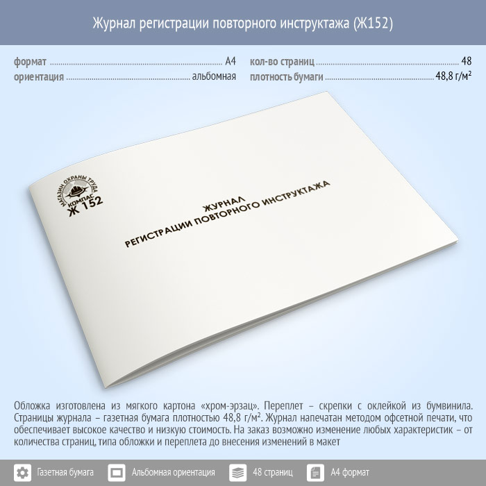 Журнал регистрации повторного инструктажа (48 стр., Ж152) в Омске купить