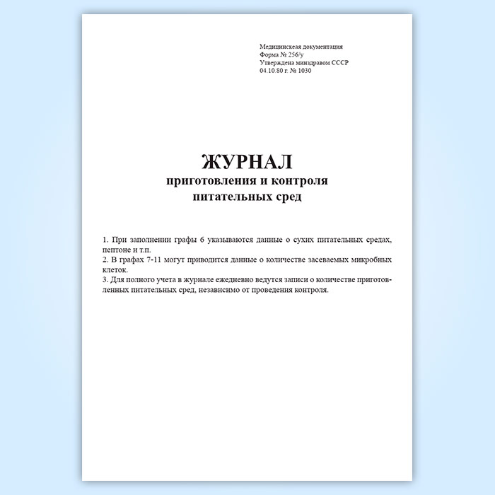 Журнал приготовления и контроля питательных сред (форма 256/у) в Омске купить