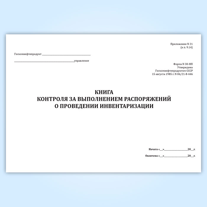 Книга контроля за выполнением распоряжений о проведении инвентаризации (форма № 30-НП) в Омске купить