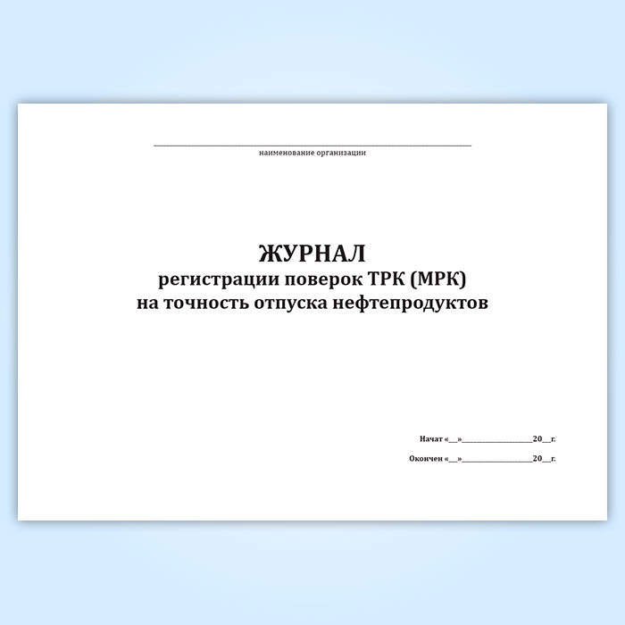 Журнал регистрации поверок ТРК (МРК) на точность отпуска нефтепродуктов в Омске купить