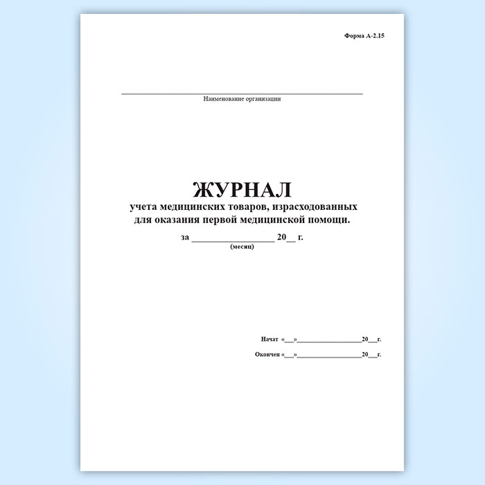 Журнал учета медицинских товаров, израсходованных для оказания первой медицинской помощи (форма А-2.15) в Омске купить
