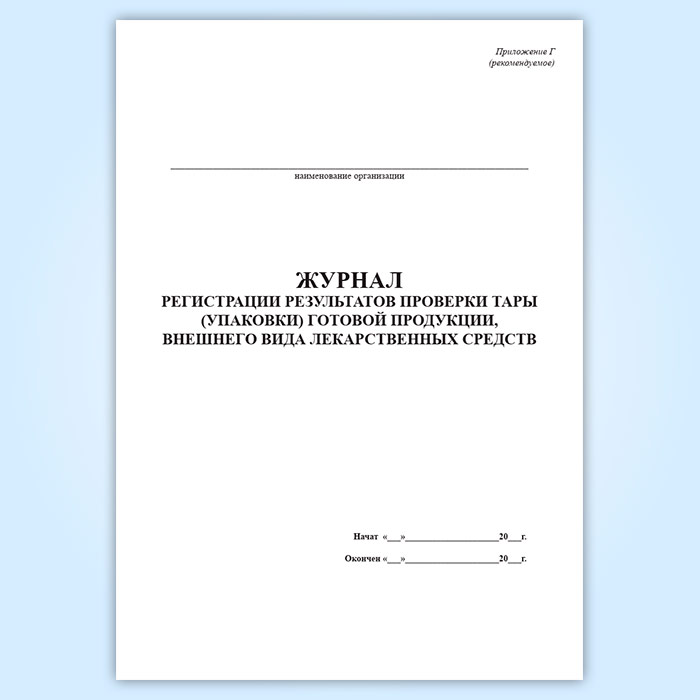 Журнал регистрации результатов проверки тары (упаковки) готовой продукции, внешнего вида лекарственных средств (форма Г) в Омске купить