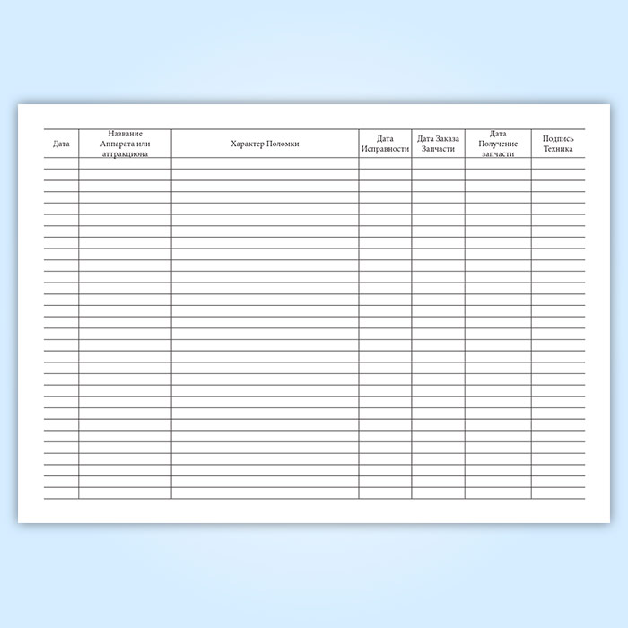 Журнал учета поломки аттракционов и игровых автоматов в Омске купить