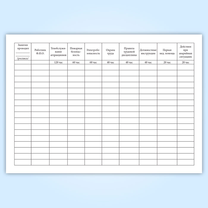 Журнал по обучению персонала передвижного городка аттракционов в Омске купить