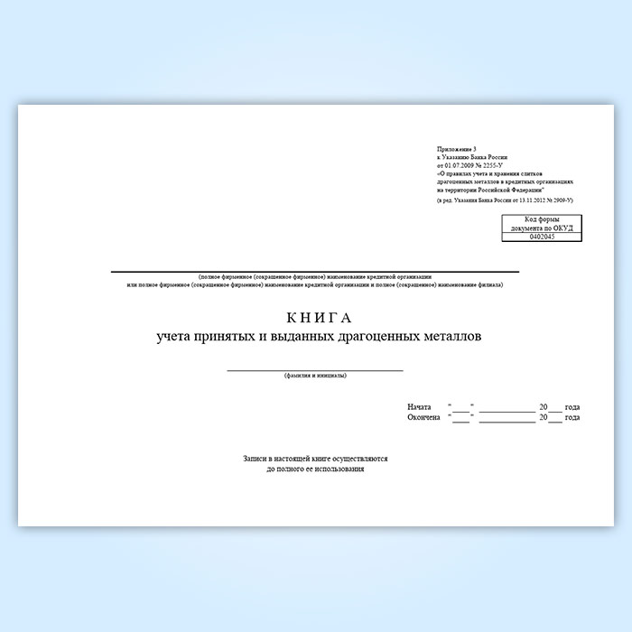 Книга учета принятых и выданных драгоценных металлов в Омске купить