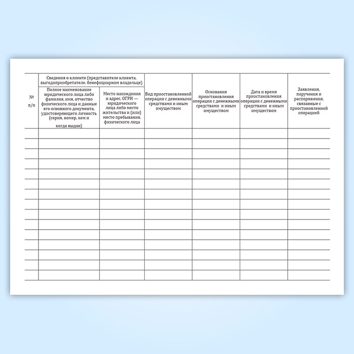 Журнал учета приостановленных операций с денежными средствами и иным имуществом клиента в Омске купить
