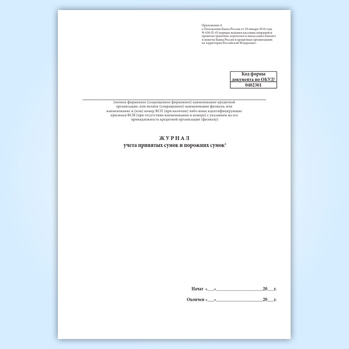 Журнал учета принятых сумок и порожних сумок (форма по ОКУД 0402301) в Омске купить