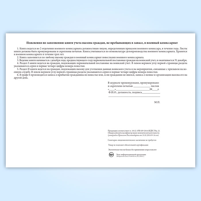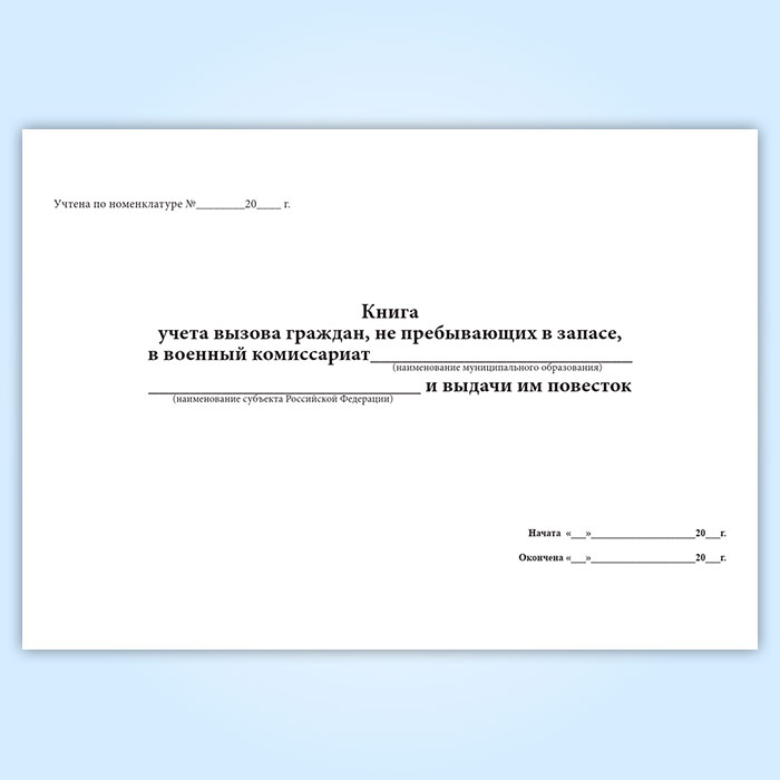 Книга учета вызова граждан, не пребывающих в запасе, в военный комиссариат и выдачи им повесток в Омске купить