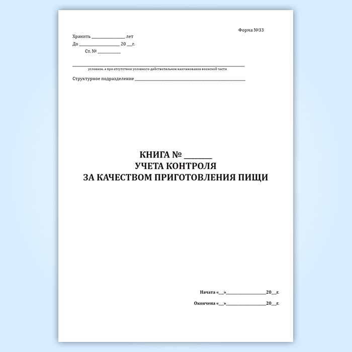 Книга учета контроля за качеством приготовления пищи (форма 33) в Омске купить