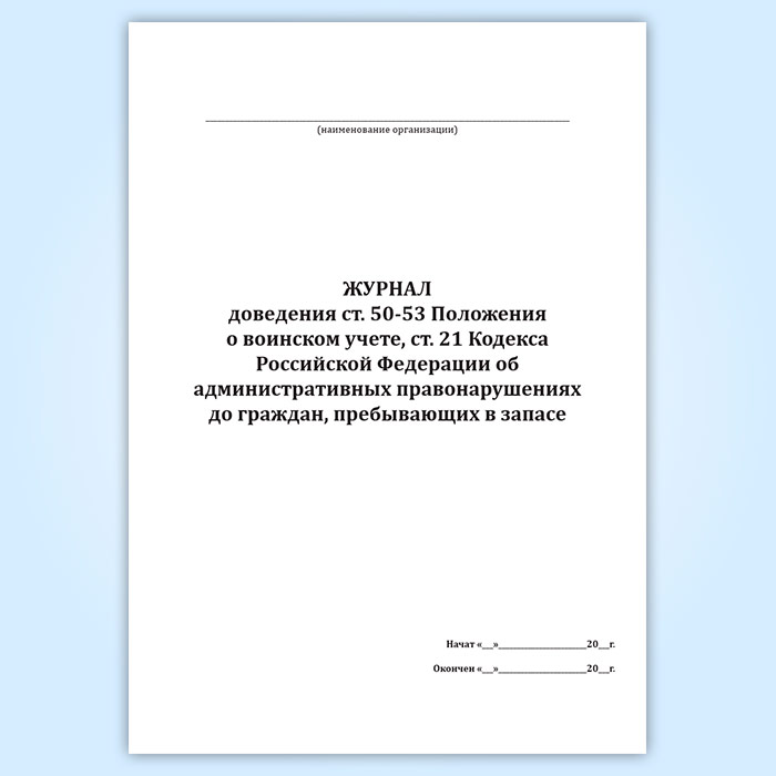 Журнал доведения ст. 50-53 Положения о воинском учете, ст. 21 Кодекса Российской Федерации об административных правонарушениях до граждан, пребывающих в запасе в Омске купить