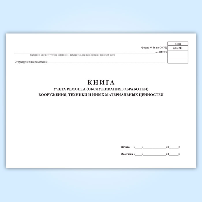 Книга учета ремонта (обслуживания, обработки) вооружения, техники и иных материальных ценностей (форма 36) в Омске купить