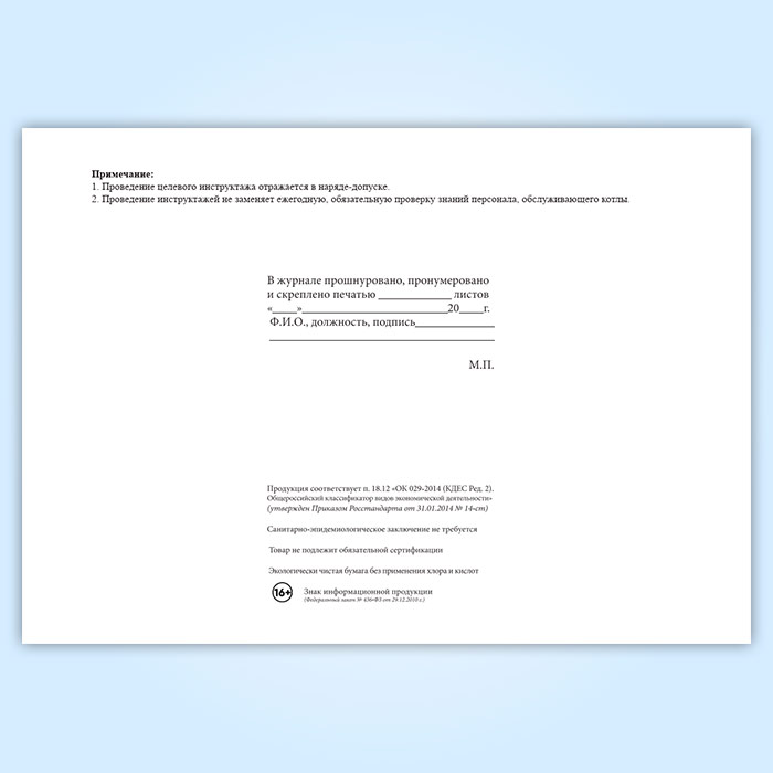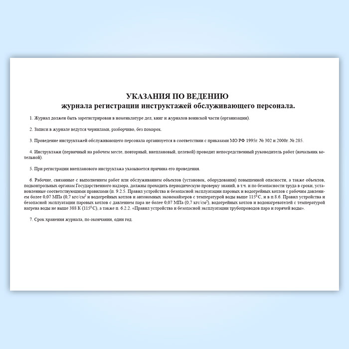 Журнал регистрации инструктажей обслуживающего персонала котельной (для воинских частей, предприятий и организаций) в Омске купить