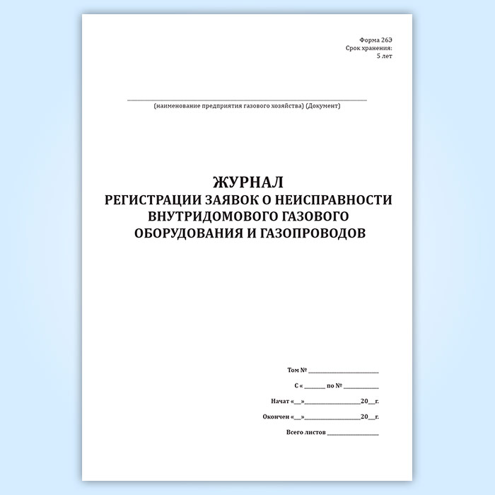 Журнал регистрации заявок о неисправности внутридомового газового оборудования и газопроводов (форма 26-Э) в Омске купить