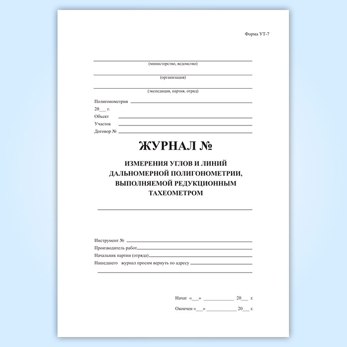 Журнал измерения углов и дальномерной полигонометрии, выполняемой редукционным тахеометром (форма УТ-7) в Омске купить