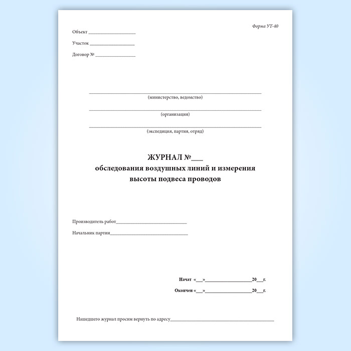 Журнал обследования воздушных линий и высоты подвеса проводов (форма УТ-40) в Омске купить