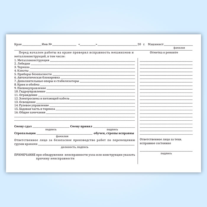 Вахтенный журнал г/п крана в Омске купить