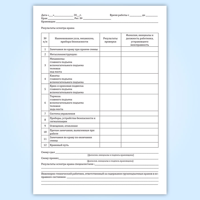 Вахтенный журнал машиниста мостового крана в Омске купить