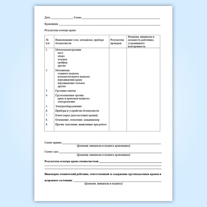 Вахтенный журнал крановщика (кранов мостового типа) в Омске купить