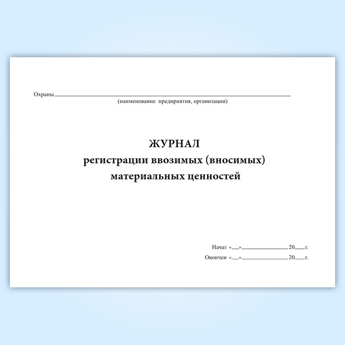 Журнал регистрации ввозимых (вносимых) материальных ценностей в Омске купить