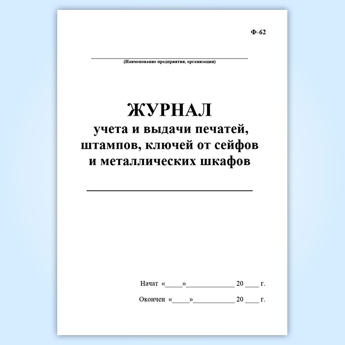 Журнал учета и выдачи печатей, штампов, ключей от сейфов и металлических шкафов (Ф-62) в Омске купить