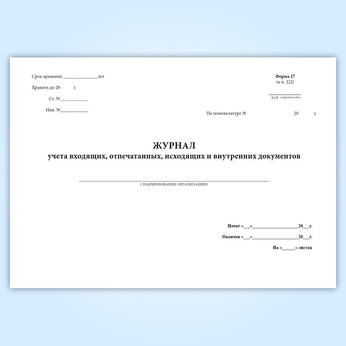 Журнал учета входящих, отпечатанных, исходящих и внутренних документов (горизонтальный) в Омске купить