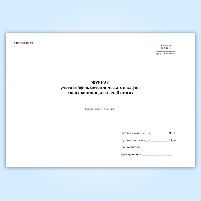 Журнал учета сейфов, металлических шкафов, спецхранилищ и ключей от них в Омске купить