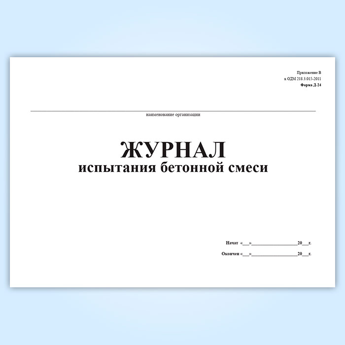 Журнал испытания бетонной смеси (форма № Д-24) в Омске купить