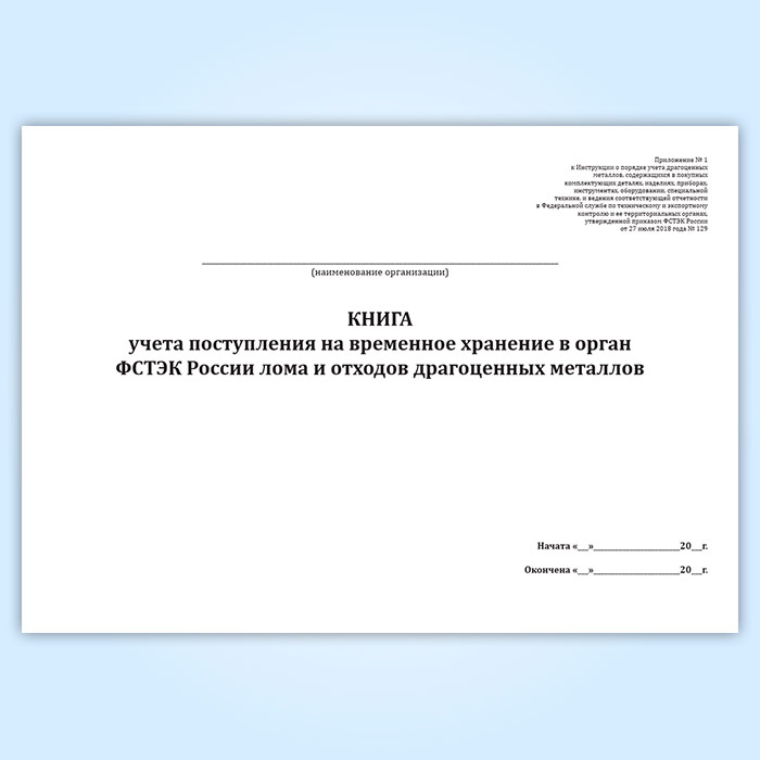 Книга учета поступления на временное хранение в орган ФСТЭК России лома и отходов драгоценных металлов в Омске купить