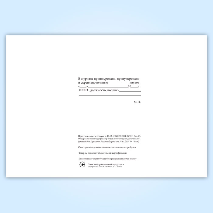 Вы получаете печатную продукцию прошнурованной и c местом для вашей печати в соответствии с действующими нормативными документами: