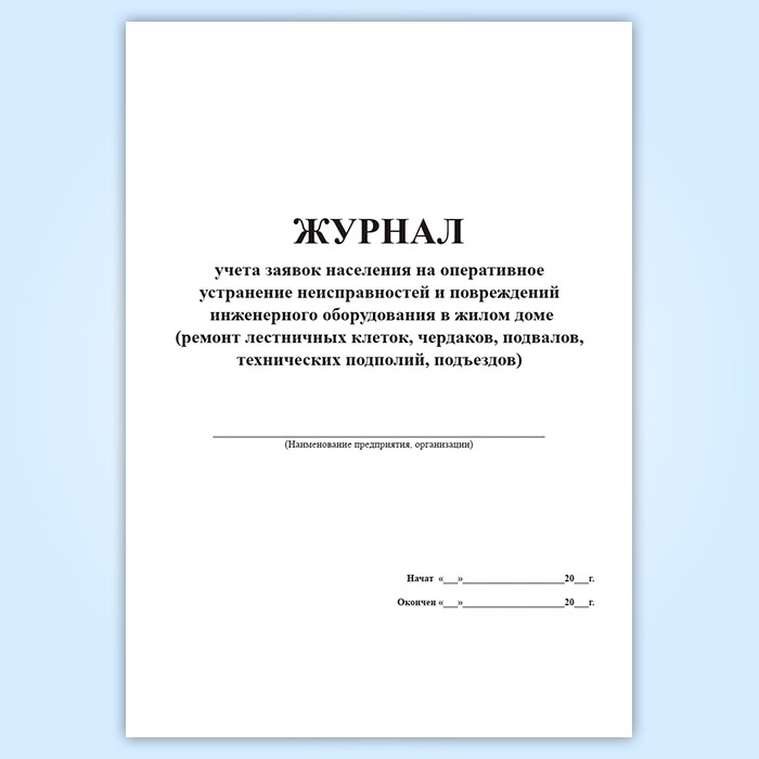 Журнал учета заявок населения на оперативное устранение неисправностей и повреждений инженерного оборудования в жилом доме ремонт лестничных клеток, чердаков, подвалов, технических подполий, подъездов в Омске купить