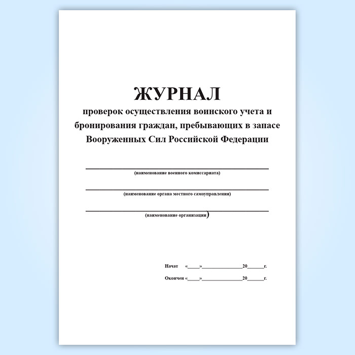 Журнал проверок осуществления воинского учета и бронирования граждан, пребывающих в запасе Вооруженных Сил Российской Федерации в Омске купить