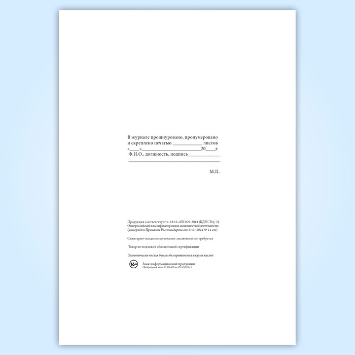 Вы получаете печатную продукцию прошнурованной и c местом для вашей печати в соответствии с действующими нормативными документами: