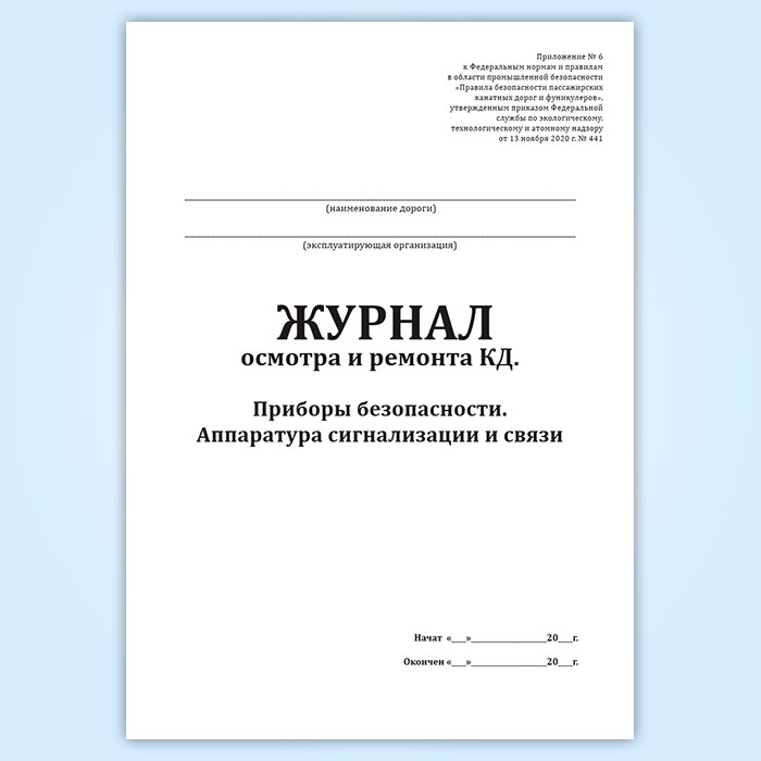 Журнал осмотра и ремонта канатной дороги. Приборы безопасности. Аппаратура сигнализации и связи (форма № 9) в Омске купить