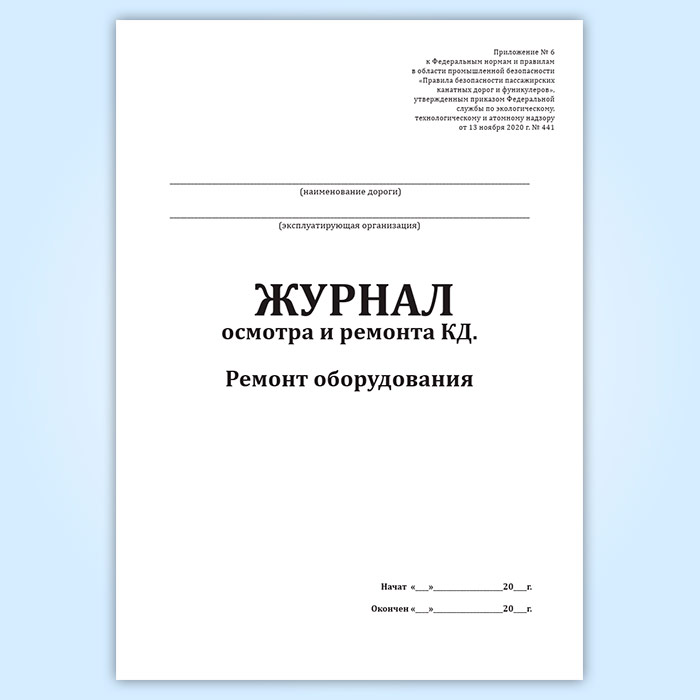 Журнал осмотра и ремонта канатной дороги. Ремонт оборудования (форма № 10) в Омске купить