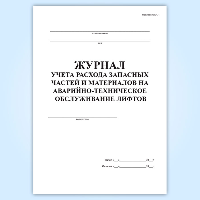 Журнал учета расхода запасных частей и материалов на аварийно-техническое обслуживание лифтов в Омске купить