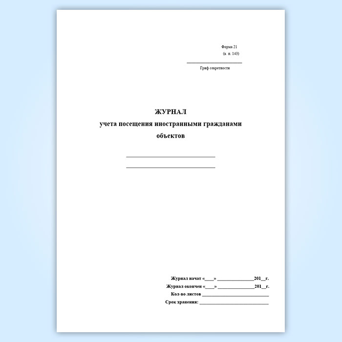 Журнал учета посещения иностранными гражданами объектов (форма 21) в Омске купить