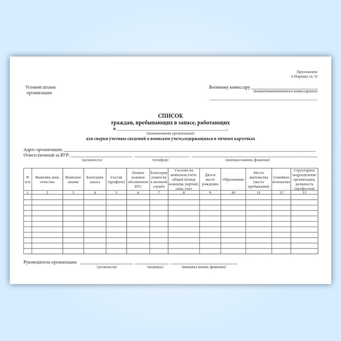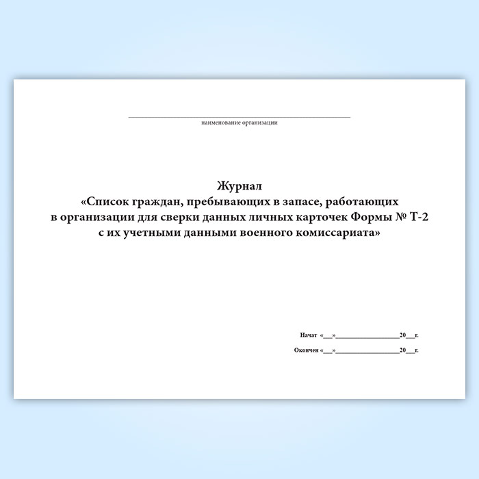 Журнал «Список граждан, пребывающих в запасе, работающих в организации для сверки данных личных карточек Формы № Т-2 с их учетными данными военного комиссариата» в Омске купить