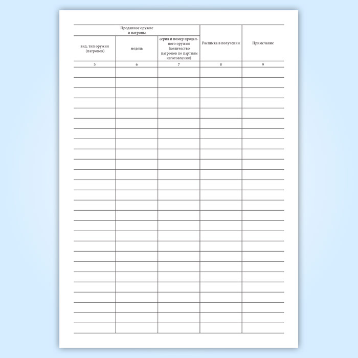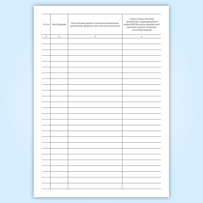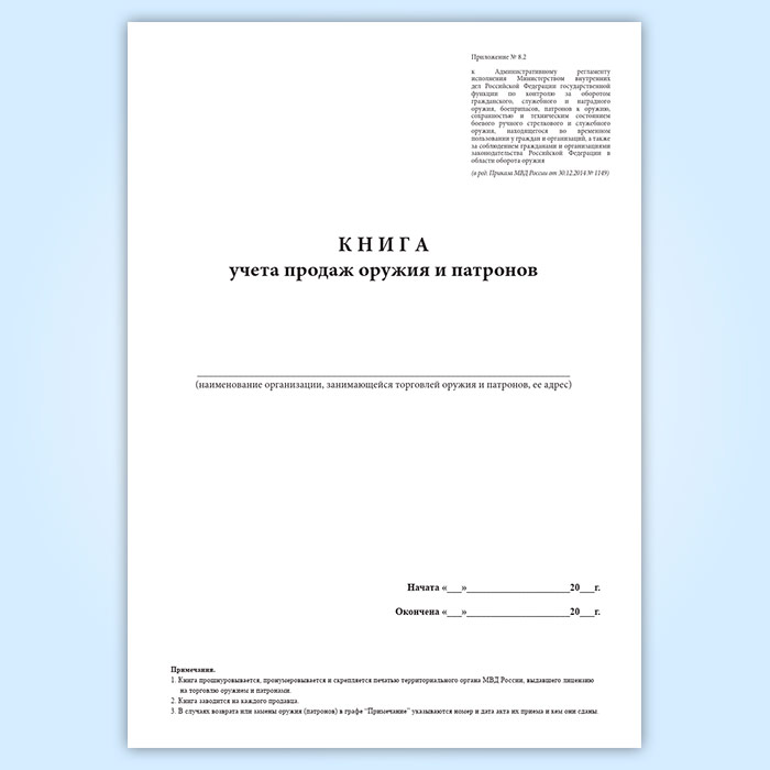 Книга учета продаж оружия и патронов (Приказ МВД России от 29.06.2012 N 646) в Омске купить